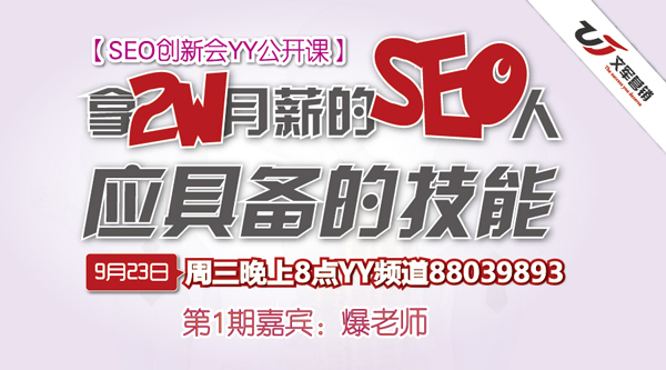 本次文軍seo創(chuàng)新會(huì)YY課程主要請(qǐng)爆老師分享SEO職場(chǎng)里的吸金故事,一個(gè)萬(wàn)元戶(hù)SEOer應(yīng)具備什么樣的技能,以及如何有效掌握這些技能,讓SEO從業(yè)人員的職業(yè)生涯... [閱讀全文]